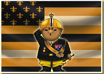 3' x 5' FlagCalled "the flag of the Who Dat Nation" by The Times Picayune (click here to view), our 3'x5' American Black and Gold Flag is made of durable polyester and has two brass grommets for attaching to a traditional flag pole. - zoom $24.99 (applicable sales tax & shipping included) |